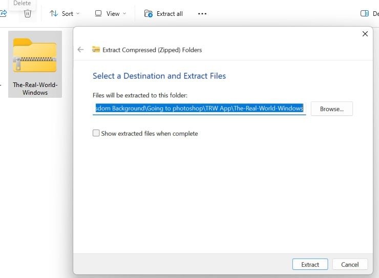 1. Go to Downloads and click The-Real-World-Windows.zip File.